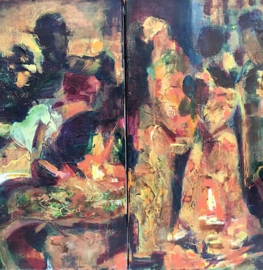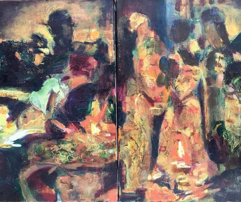 Au marché la nuit –Oil on canvas, 2023 - diptyque - 2 x 35x24cm